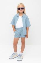 Шорты трикотажные для девочек из 100% хлопка. Длина уменьшена до середины бедра по сравнению с коллекцией Лето 25. Шорты с поясом на широком простроченном эластике и дополнительной шнуровкой обеспечивают идеальную посадку и регулировку по размеру.По переду два накладных кармана.