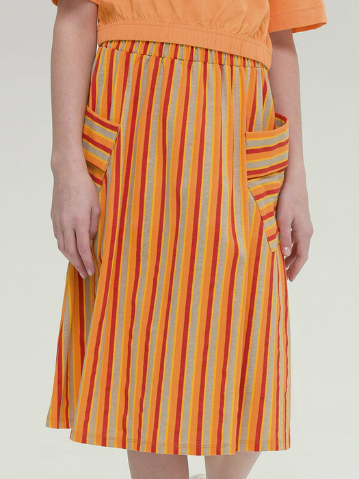 Модная трикотажная юбка для девочки на резинке - это практичный вариант на каждый день. Выполнена из воздушного хлопкового трикотажа принтованного в полоску - идеальна для жаркой погоды. Юбка, слегка расклешенная книзу, длиной до середины икры. По бокам два больших накладных наклонных кармана с клапанами привлекают внимание и делают юбку самой актуальной в этом сезоне. Широкая резинка не давит, не натирает - удобно и комфортно в течение всего дня. Легкая повседневная юбка займет достойное место в гардеробе девочки, подойдет как для ежедневной носки, так и для особых случаев.