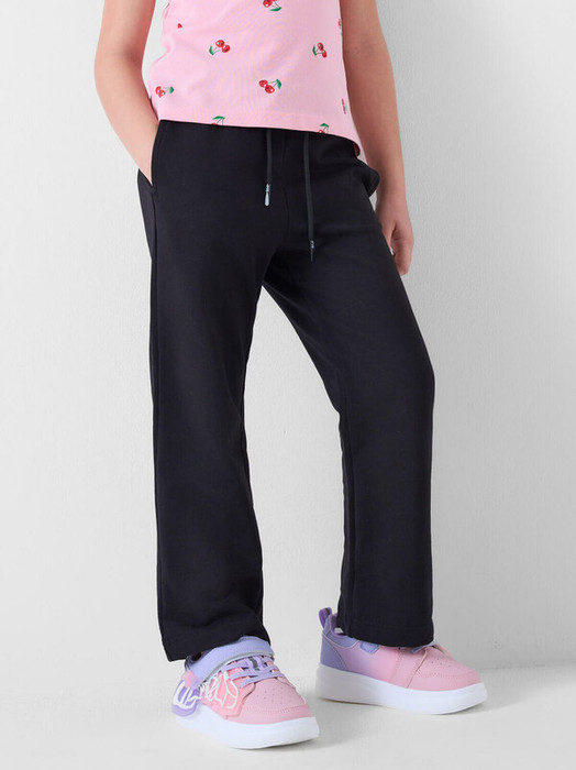 Детские брюки клеш для девочки. Выполнены из хлопкового трикотажа футер без начеса. Средняя посадка на талии. Пояс на резинке, дополнительно регулируется шнурком.