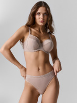 В серии Tandem изящно сочетаются кружевное полотно с цветочным рисунком и эффектом клиппинга, сетка «в горошек» и узкое кружево, что придает ей легкость и в то же время подчеркивает характер современной девушки. *Клиппинг – особая технология создания выразительных и деликатных рисунков, соединенных тонкой нитью, которая впоследствии обрезается на специальной машине. В итоге на поверхности кружева можно заметить маленькие узелки, свидетельствующие о благородном происхождении полотна.