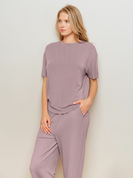 Футболка изготовлена из сочетания модала и акрила, она имеет свободный прямой крой и короткий рукава