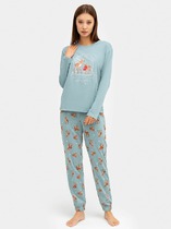Пижама Indefini салатового цвета украшена нежным цветочным принтом, добавляя пижаме свежести и женственности.