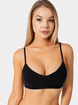 Ластовица на подкладке гарантирует гигиеничность. Обработка пройм и верхнего среза эластичной тесьмой предотвращает натирание, а регулируемые бретели с пластиковыми кольцами позволяют отрегулировать посадку. Если вы хотите купить бюстгальтер пуш-ап, который объединяет технологичность, хорошие материалы и визуальный эффект увеличения объема, эта модель станет вашим выбором.  Черный бюстгальтер пуш-ап универсален — он подчеркнет образ под облегающей одеждой или станет основой для романтического лука.