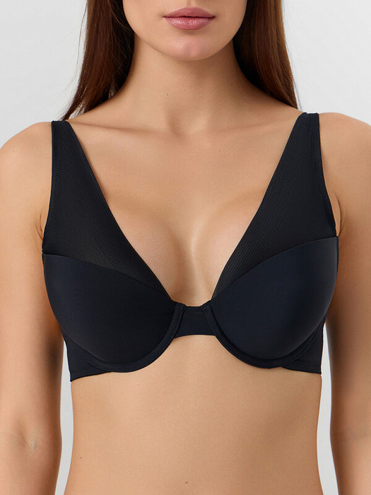 Бюстгальтер женский пушап, на каркасах 63 типа, с формованной чашкой (СС-64.18), без стана. Выполнен из микрофибры с отделкой по чашке кружевом с прямым краем. Чашка обтянута микрофиброй с подформовкой, по верхнему краю деталь из кружева.