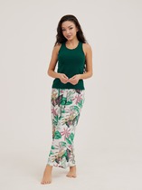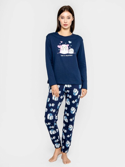 Горловина круглой формы с притачной обтачкой из основного полотна. Рукава длинные втачные. Перед и спинка цельнокроеные. Низ джемпера и рукавов обработан швом в подгибку. Брюки длинные, немного заужены к низу. Пояс цельнокроенный с эластичной тесьмой внутри. Низ брюк застрочен с эластичной тесьмой внутри.