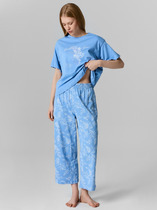 Комплект состоит из джемпера и шорт. Джемпер свободного силуэта. Перед и спинка цельнокроеные. Горловина обработана воротником «поло». Рукава втачные, длиной до локтя, со спущенной линией плеча. Низ изделия и рукава в подгибку. Шорты свободного силуэта, короткие. Перед и спинка цельнокроеные. Пояс цельнокроеный, с втаченной эластичной тесьмой. Низ шорт обработан швом в подгибку..