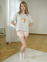 Комплект женский состоит из жакета и шорт. Жакет прямого силуэта, спинка цельнокроеная. Горловина оформлена отложным воротником с лацканами. Жакет с центральной застежкой с петлями и пуговицами. Рукав втачной, короткий, низ обработан ришелье. Низ застрочен швом в подгибку.