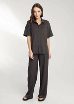 Брюки широкие из трикотажного полотна джерси. По талии притачной пояс на внутренней резинке со шнуром из основного полотна. Боковые карманы с отрезным бочком.