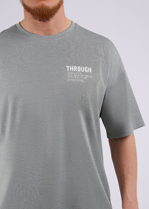 Свободная мужская футболка oversize из фактурного ""пике"" в составе с хлопком. Изделие с круглым вырезом горловины, со спущенной линией плеча и удлиненным рукавом, дополнено принтом по груди и жаккардовой нашивкой. Модель для тех, кто любит свободный стиль в одежде.
