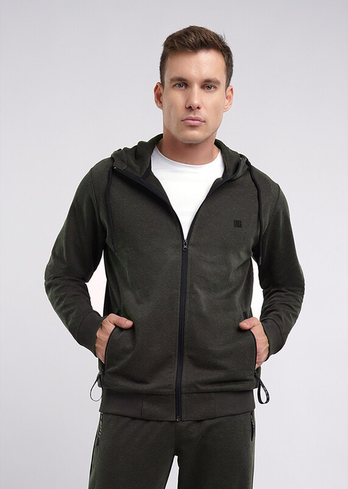 Куртка мужская с застежкой-молнией по переду на капюшоне из плотного пике. Рукава втачные с манжетой, по низу пояс. На капюшоне люверсы со шнуром и наконечниками. Для функциональности и удобства спереди карманы на молнии с тесьмой.