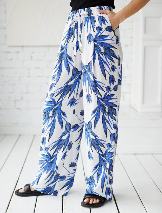Совместные покупки Тюмень Женская одежда Брюки — 27.03 Vilatte Брюки из вискозы с лиоцеллом D24.270 синий-белый