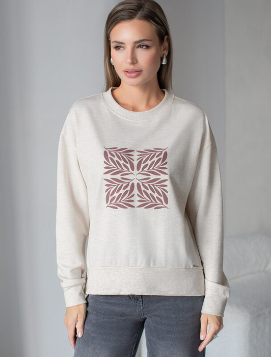 27.03 Vilatte Джемпер D49.137 бежевый меланж_листья