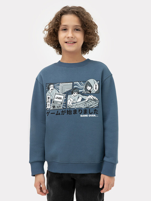 Джемпер из трикотажного полотна футер с теплым подчесом. Джемпер свободный, прямого силуэта, длиной до середины ягодиц. Рукава длинные с манжетами. Стильный цвет и нетривиальный дизайн делают этот джемпер практичным и желанным для любого мальчишки!