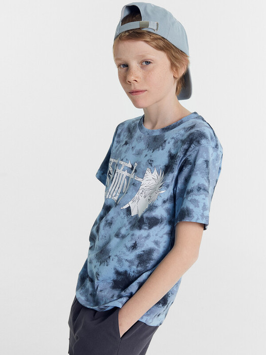 Футболка верхняя прямого силуэта. Перед и спинка цельнокроенные. Рукава втачные короткие. Линия плеча спущена. Горловина круглой формы, обтачка из трикотажного полотна рибаны 1*1. Шов втачивания рибаны по спинке закрыт бейкой из основного полотна. Низ футболки и рукавов обработан на 2-х игольной плоскошовной машине швом в подгибку.