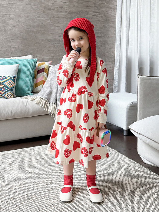 Это прелестное платье с отрезными воланами станет прекрасным дополнением к гардеробу вашей девочки. Выполненное из высококачественного 100% хлопка, оно обеспечивает исключительный комфорт и свободу движений, позволяя коже ребенка дышать. Изящный, полуприлегающий силуэт платья создаст женственный и элегантный образ. Длинные рукава и круглый вырез горловины гарантируют свободу движений. Оригинальный принт придает модели особенный шарм и индивидуальность. Благодаря продуманному крою и качественному пошиву, платье идеально садится по фигуре, обеспечивая комфорт и свободу на протяжении всего дня. Оно одинаково уместно как для повседневных прогулок, так и для праздничных мероприятий. Сочетайте его с колготками, кардиганами и туфельками для создания стильных образов!