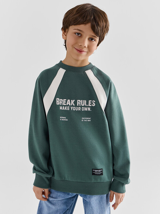 Свитшот для мальчиков свободного силуэта. Рукава длинные, реглан, с отрезными манжетами из