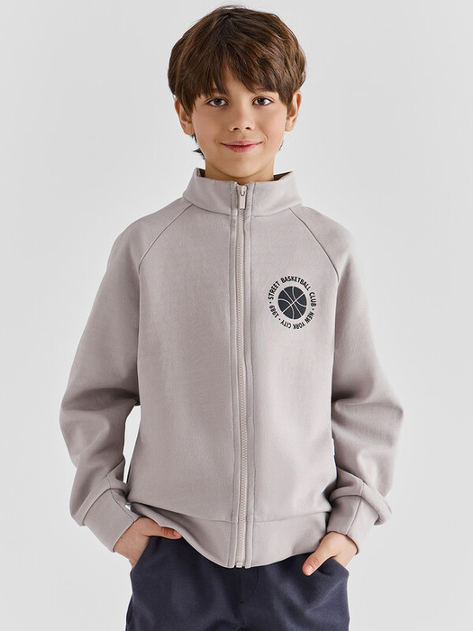 Толстовка свободного силуэта. В горловину втачен воротник-стойка из основного полотна. Рукава втачные, длинные - реглан. По низу рукава манжеты из основного полотна. По переду застежка на молнию. По низу изделия отрезной пояс из основного полотна.