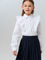 Белая нарядная текстильная блузка прямого силуэта, приталенная для девочки подростка. Школьная блузка на кнопках хорошо держит форму, комфортна в носке и проста в уходе. Высокое содержание хлопка. Рубашка в школу с длинным рукавом и интересным дизайном разнообразит повседневные школьные образы.
