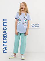 Это широкие джинсы для девочки подростка. Силуэт wide leg с высокой посадкой. Пояс на резинке дополнен внутренним шнуром для удобной регулировки. Удобные боковые карманы.