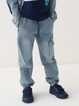 Джинсы для мальчика подростка. LOOSE FIT - модный широкий крой. Средняя посадка. На резинке со шнурком. Накладные карго-карманы.