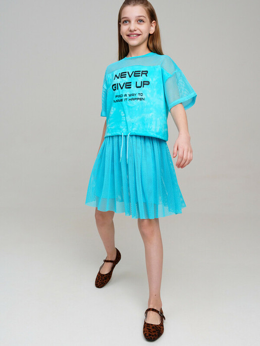 Футболка для девочки подростка. Укороченная оверсайз футболка с высоким содержанием хлопка 95%. Благодаря наличию эластана в составе ткани изделие проще в уходе и держит форму. Утяжка шнурком по низу изделия. Декор из сетки. Модель выполнена из качественного и приятного на ощупь трикотажа.