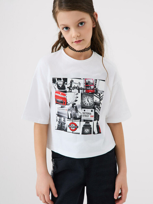 Футболка оверсайз для девочки подростка. Модель выполнена из эластичного хлопкового трикотажа джерси. На груди и спинке расположен красочный принт. Горловина круглая.