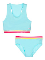 Комплект белья: трусы-шорты и топ со съемными чашками из мягкой трикотажной ткани с добавлением эластана для комфортной носки и свободы движений. По низу топа и поясу шорт фактурная резинка.