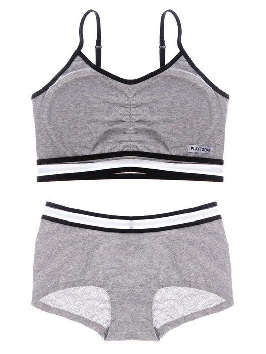 Комплект белья: трусы-шорты и топ со съемными чашками из мягкой трикотажной ткани с добавлением эластана для комфортной носки и свободы движений. Регулируемые бретели. По низу топа и поясу шорт фактурная резинка.
