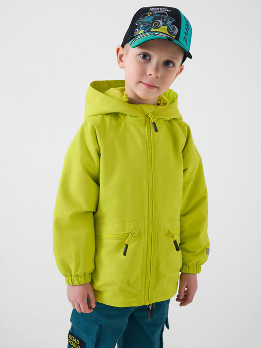 Детская ветровка для мальчика. Температурный режим от +20С до +10С. Ткань с ветрозащитным и водоотталкивающим покрытием. Внутри мягкая флисовая подкладка. Капюшон несъемный с утяжкой стопперами. Два больших боковых кармана на молниях. Внутренний карман на липучке. Манжеты на резинке. По низу изделия утяжка на стопперы. На рукавах и спинке размещены светоотражающие элементы для безопасности.