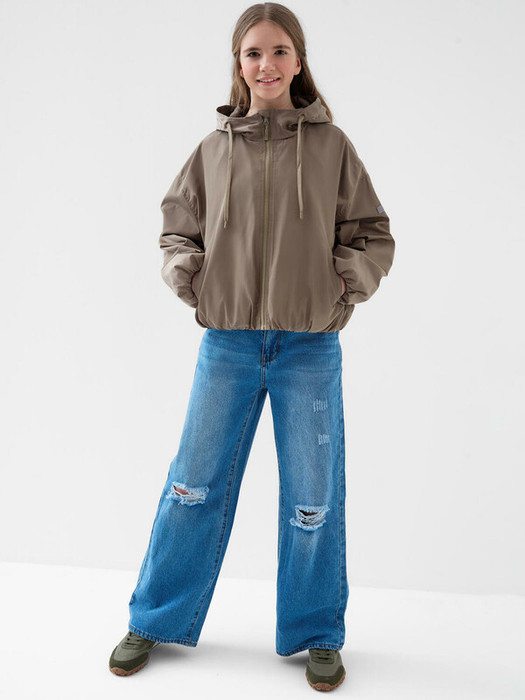 Оверсайз ветровка для девочки подростка. Температурный режим от +20С до +10С. Ткань с ветрозащитным и водоотталкивающим покрытием. Внутри гладкая подкладка. Капюшон несъемный с утяжкой шнуром. По бокам расположены два удобных прорезных кармана. Низ изделия и рукава собраны на резинку, что помогает лучше сохранять форму и защищает от ветра. Декоративные светоотражающие элементы добавлены на рукаве и спинке для дополнительной безопасности в тёмное время суток.