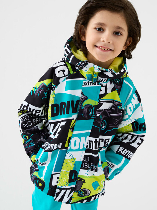 Детская ветровка с мембраной для мальчика. Температурный режим от +20С до +10С. Ткань с мембранным покрытием 5000х5000. Внутри — мягкая флисовая подкладка. Внешняя ветрозащитная планка на липучках. Капюшон несъемный, регулируется резинкой со стопперами. Два боковых кармана на липучке. Внутренний карман на липучке. На рукавах — эластичные манжеты. Утяжка на стопперы по низу изделия. Светоотражающие элементы с логотипом на рукаве и спине.