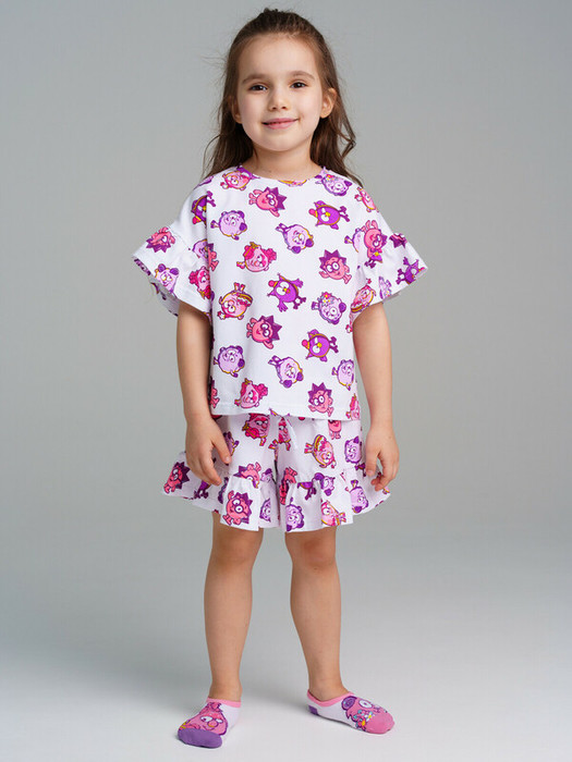 Комплект: футболка, шорты из трикотажа с высоким содержанием хлопка 95%. Благодаря наличию эластана в составе ткани, изделие проще в уходе и держит форму. Шорты прямого кроя. Эластичный пояс с тесьмой позволяет легко надевать шорты и утягивать до комфортной посадки.