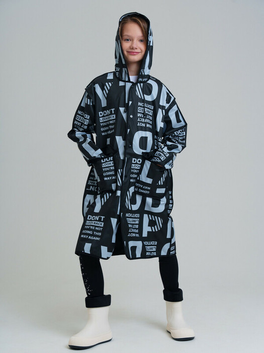 Плащ-дождевик для девочки-подростка с принтом в коллекцию. Капюшон с утяжкой. Застежка на кнопки. Материал  ЭВА. Без подкладки. Модель имеет спереди два накладных кармана с клапаном. Добавлена петелька под капюшоном с внешней стороны, чтобы остальные вещи на вешалке не намокали. Сзади есть светоотражающая полоска. Идеально подходит для парного образа мама-дочь, так как такая модель есть в размерах для взрослых.  В комплекте идет непромокаемая сумочка.
