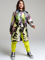 Трендовый дождевик с оригинальным принтом для мальчика-подростка. Плащ выполнен из полиэстера с водоотталкивающим покрытием . Внутри все швы дополнительно проклеены изолирующей тесьмой. Застежка на кнопки. Капюшон на утяжке. Модель имеет спереди два накладных кармана с клапаном. Чтобы в плаще не было жарко, кокетка спинки имеет воздухоотводящие отверстия под клапаном. Сзади есть светоотражающая полоска. Модель идеально  сочетается с резиновым сапогам и зонтом из коллекции. Идеально подходит для парного образа папа-сын, так как такая модель есть в размерах для взрослых.  В комплекте идет непромокаемый мешочек.