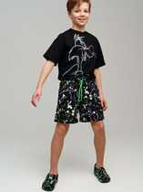 Плавки-шорты средней длины, прилегающего силуэта для мальчика подростка. Изготовлены из эластичного трикотажа, с подкладкой для большего комфорта. Ткань устойчива к солнцу и солёной воде, благодаря UF-защите сохраняет насыщенность цвета и структуру волокон. В поясе — удобная резинка и регулируемый шнурок. Спереди — яркий принт.