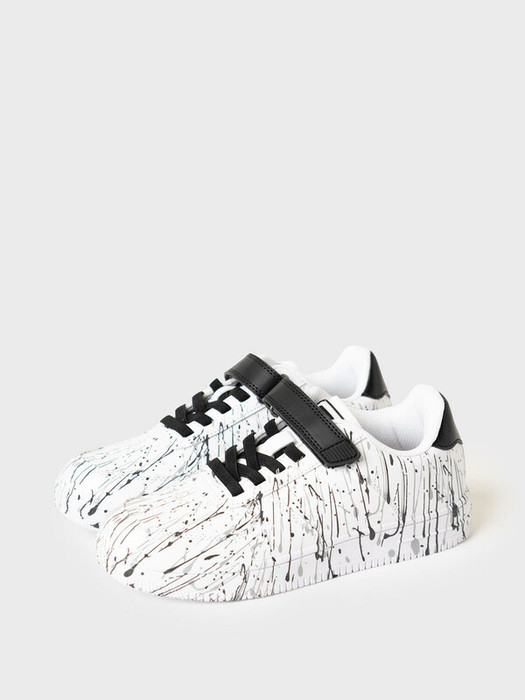 Трендовые кеды для девочки подростка. Кроссовки выполнены из искусственной кожи с оригинальным светоотражающим принтом - обувь как будто забрызгана краской.  Эластичные шнурки и липучка создают удобство при обувании. В носочной части обуви стоит текстильная подкладка c высоким содержанием хлопка 80%, которая обладает высокой гигроскопичностью. В пяточной части обуви текстильная подкладка обладает хорошей износостойкостью. Профилированная съемная стелька из натуральной кожи с анатомической формой подсводника обеспечивает правильную нагрузку на стопу. Формоустойчивый задник поддерживает стопу в правильном положении. Эргономичная форма колодки обеспечивает правильное формирование стопы ребенка. Подошва из ТПР гибкая, не скользит и устойчива к истиранию.