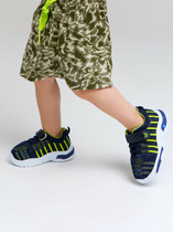Кроссовки для мальчика с подошвой с LED-подсветкой Кроссовки выполнены из дышащего текстиля и искусственной кожи с повышенной износостойкостью. Эластичные шнурки и липучка создают удобство при обувании. Профилированная съемная стелька из натуральной кожи с анатомической формой подсводника обеспечивает правильную нагрузку на стопу. В носочной части обуви стоит текстильная подкладка c высоким содержанием хлопка 80%, которая обладает высокой гигроскопичностью. В пяточной части обуви текстильная подкладка обладает хорошей износостойкостью. Кроссовки имеют светоотражающие элементы. Формоустойчивый задник поддерживает стопу в правильном положении. Эргономичная форма колодки обеспечивает правильное формирование стопы ребенка. Подошва из ЭВА очень легкая.