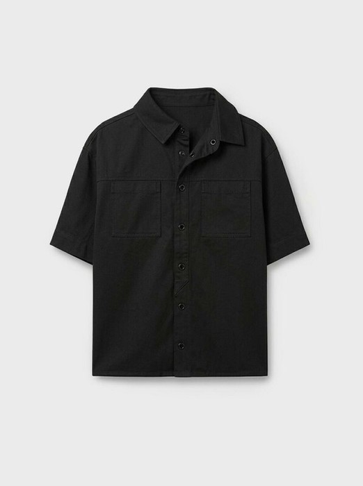 Рубашка оверсайз для мальчика подростка. Модель свободного кроя с короткими рукавами, выполненная из хлопковой ткани. Спереди два накладных кармана, воротник классической формы. Застежка — на кнопках. На спинке — стильный принт.