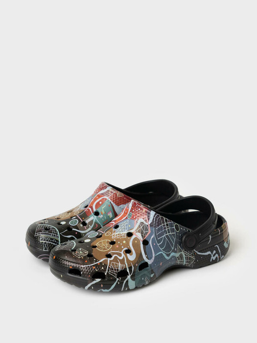 Сабо для девочки. Сабо из облегченного и прочного ЭВА с принтом фрагмента картины Василия Кандинского, Движение, 1935. Материал хорошо моется. Форма модели учитывает эргономику стопы. Модель имеет перекидной ремешок для лучшей фиксации обуви на ноге.