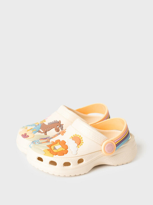 Сабо детские для девочки. Сабо из облегченного и прочного ЭВА. Материал хорошо моется. Объемный рисунок на правой и левой полупарах рассказывают нам целую историю из мира животных. Форма модели учитывает эргономику стопы. Модель имеет перекидной ремешок для лучшей фиксации обуви на ноге. Благодаря вентиляционным отверстиям сабо проветриваются, ноги ребенка дышат и не потеют.