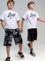 Комплект шорт свободного кроя из качественного и приятного на ощупь трикотажа джерси. Высокое содержание хлопка 95%. Благодаря наличию эластана в составе ткани изделие проще в уходе и держит форму. Карманы в боковых швах. Эластичный пояс со шнурком.
