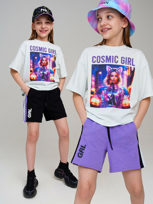 Набор шорт для девочки подростка. Комплект шорт из качественного и приятного на ощупь трикотажа джерси. Шорты на резинке со шнурком. Боковые карманы. Лампасы. Высокое содержание хлопка 95%. Благодаря наличию эластана в составе ткани изделие держит форму и меньше мнется.  Модель выполнена из качественного и приятного на ощупь трикотажа.