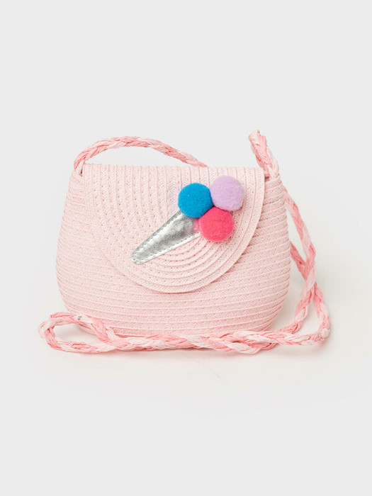 Пляжная сумка кросс-боди для девочки. Маленькая сумочка из искусственной рафии декорирована объемной аппликацией мороженое. Сумка имеет одно отеделение, которое закрывается наклапан с  кнопкой.  Параметры сумки: высота - 12 см, ширина - 18 см, глубина - 7 см