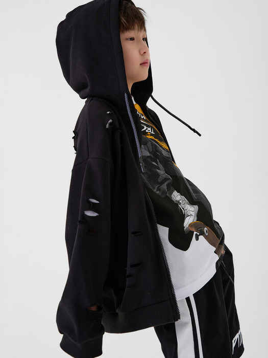 Толстовка оверсайз для мальчика подростка. Выполнена из мягкого, хлопкового футера без начеса. Главной особенностью дизайна являются декоративные сквозные прорези на рукавах, спинке и передней части, подчёркивающие уличный стиль. Капюшон дополнен шнурком, есть два удобных кармана по бокам. Манжеты и низ изделия выполнены из эластичного риба, что делает посадку комфортной.