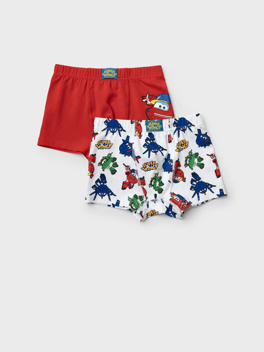 Набор из двух детских трусов-боксеров для мальчика. Изделие плотно прилегает к телу, не имеет боковых швов, что делает его особенно комфортным. Эластичный пояс с логотипом бренда обеспечивает надёжную посадку. Принт с любимыми мультяшными героями Super Wings. Материал — мягкий хлопковый трикотаж, приятный к телу.
