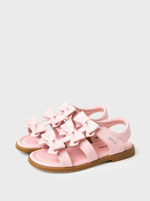 Стильные босоножки с бантиками для маленьких принцесс. Сандалии выполнены из искусственной кожи. Удобная застежка липучка. Мягкая деталь на пяточном ремне. Подошва из резины очень гибкая.