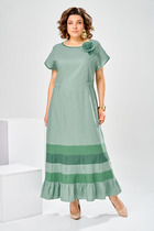 Платье свободного силуэта из плательной ткани. Изделие отрезное по линии талии, с ярусами на юбке. Круглый вырез горловины обработан трикотажной бейкой. Втачной рукав до локтя с манжетой из трикотажной резинки. Платье ярусами незаменимая вещь, оно не облегает фигуру, в нём комфортно и можно скрыть некоторые особенности фигуры. В таблице размеров представлены параметры человека, а не изделия.