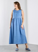 Платье-рубашка из денима выполнено по классической джинсовой технологии. Свободный силуэт с застёжкой на планке. Низ изделия с закруглениями по бокам. Рубашечный рукав на манжете с застёжкой на кнопки. Вырез горловины обработан отложным воротником на стойке. На передней части выполнен накладной карман в области груди. Швы оформлены декоративными строчками. Достоинство этой модели в способности скрыть некоторые недостатки фигуры.