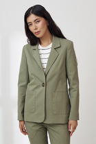 Двубортный жакет из костюмной ткани. Изделие полуприлегающего силуэта с английским воротником и застежкой на пуговицы. На передней части жакета выполнен нагрудный карман с листочкой и карманы в рамку с клапаном. По центру задней части выполнена шлица - элемент декоративный и необходимый. Обеспечивает свободу движения, добавляет шику и элегантности. Втачной длинный рукав, снизу имитация шлицы с пуговицами. Изделие идеально держит форму, имеет четкую линию плеча благодаря плечевым накладкам. Жакет на подкладке.