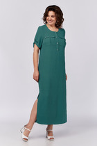 Платье из вискозной ткани с крэш-эффектом. Свободный силуэт с карманами в боковых швах. По центру передней и задней части изделия выполнен шов. Цельнокроеная стойка, переходящая в V-образный вырез горловины, визуально делает фигуру стройнее. Цельнокроеный короткий рукав. В комплекте пояс из основной ткани.